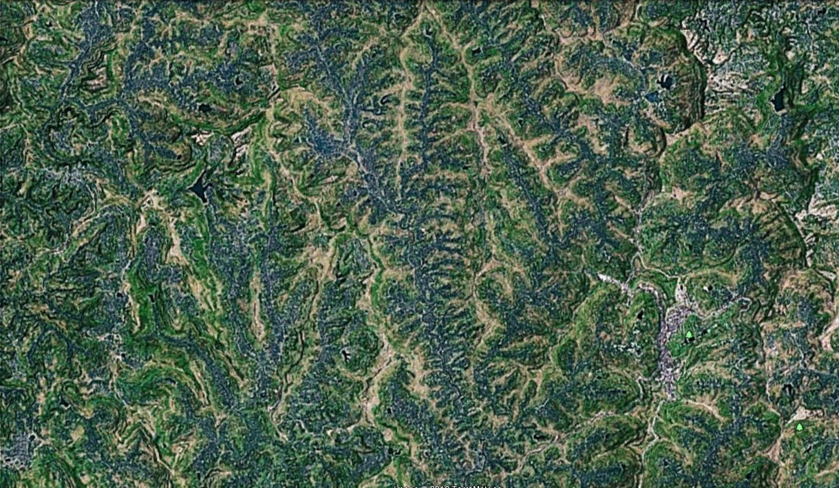 Auf googles Satelitenbildern ist Lefeng nur schlecht zu sehen, das lag wohl gerade unter Wolken als der Satellit fotografierte ..., aber die Karte gibt einen Eindruck von der Topografie von der Gegend hier ... hügelig, teilweise steile Berghänge, Wasserläufe zwischendrin, Reis-und Gemüsefelder in Terrassen, die Berg/ Hügelspitzen und auch manche steile Täler sind mit Bambus, Lilien und Gesträuch und Wacholderbäumen (oder sind es Zedern oder Zypressen?) bewachsen.